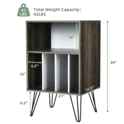 Costway Record Player Stand Turntable Stand Display Shelf Media Storage Cabinet Walnut