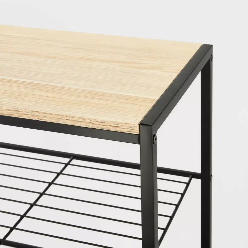 4 Tier Shoe Rack Black Metal With Natural Wood – Brightroom™