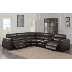 5pc Tomasso Leather Power Reclining Sectional With Power Headrest Blue – Abbyson Living