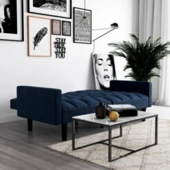 - Constructed from laminated engineered wood with powder-coated metal feet