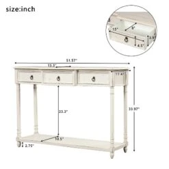 - 【Functional and Decorative Metal Handles】The console table is equipped with metal handles that are not only practical for easy drawer access but also serve as decorative elements that complement the overall vintage design.