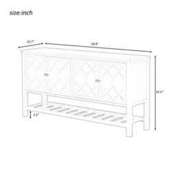 The 59-inch wide vintage console table combines minimalist design with elegant soft round contours, bringing a refined and comforting presence to your space. Featuring rounded edges and grooved detailing, this console table is enhanced by metal handles that offer both practicality and decorative appeal, perfectly complementing its vintage style. The table includes two hidden, spacious drawers for storage. Constructed from high-quality MDF and fir wood veneer to ensure stability and durability. Additionally, the two side panels at the bottom come with four adjustable plastic feet that serve as support, allowing you to adjust the height and ensure stability. Matching sideboards and coffee tables are also available for purchase.