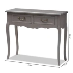 Add a bold centerpiece to your space with the stunning design of the Angelo console table. Made in Malaysia, the Angelo is comprised of sturdy wood showcasing a distressed oak brown finish for a weathered, antique look. Its broad tabletop and two spacious shelves provide ample surface area to organize busy rooms. Requiring assembly, the Angelo features robust crisscross side beams that stand out while allowing light to flow more easily throughout the room. Whether utilized in the entryway, hallway, or living room, the Angelo console table anchors any space with rustic charm. Overall Dimensions: 31″ High x 63″ Wide x 15.4″ Deep; Top Shelf: 10.1″ High x 54.5″ Wide x 11.5″ Deep; Bottom Shelf: 11.7″ High x 54.5″ Wide x 11.5″ Deep; Legs: 2″ High;