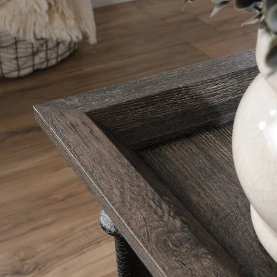 Do you have a love for industrial-inspired style? Then we have the perfect piece for you. Add a simple touch of industrial style and design to your home with this tray top side table from the Canal Street® collection. This industrial side table offers a spacious top surface that provides you with the room you need for all your couch-side necessities like a table lamp, decorative plants, the TV remote, and a refreshing ice-cold beverage. It also features a lower open shelf for additional storage and display of items like books, knick-knacks, or an organizing bin. This metal and wood end table is finished on all sides for versatile placement throughout any room in your home – cozied up next to the couch or next to your bed in the bedroom. It looks great no matter where it stands! Finished in Carbon Oak® and detailed with a decorative, powder coated metal frame, this beautiful side table is just what you’ve been looking for.