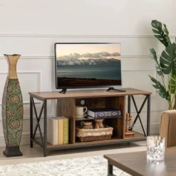 - STATEMENT PIECE: With stylish, rustic, and industrialized construction, this TV stand will make the perfect statement piece in living spaces