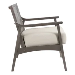The INK+IVY Melbourne Accent Chair offers a simple and natural update to your living room decor. This upholstered accent chair features a removable cushion on the back and an attached seat cushion that provides soft comfort for this mid-century chair. The solid wood frame showcases a natural wheat finish, while the back has a cane insert to create a coastal allure. Add this accent chair to your home to your space a natural charm. Assembly is required.