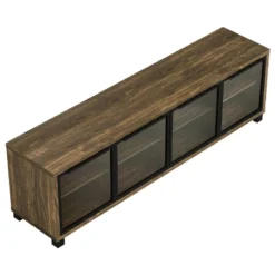 A must-have for living areas and entertainment spaces, this TV stand sets the stage for the big game, a movie marathon, or that season finale everyone’s been talking about. Crafted from steel it strikes a clean-lined silhouette and boasts a solid blackened bronze finish for a look that blends with nearly any color palette.Features : Hand crafted blackened bronze finish is applied to the steel frame.Clean with a soft, dry cloth; no harsh chemicals or abrasive cleaning materials.Features easy assembly.Accommodates most flat-screen TVs up to 55 inches. Made from premium metal and tempered glass this media console can support up to 75 LBS.Premium materials have been used in the making of this productSpecifications : Product Weight : 40.7 lbsFrame Material : Metal